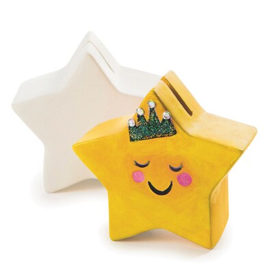 They save and you save! Use paint, markers or glaze to decorate this star bank! All decorating materials are sold separately. Features a coin slot on top and rubber stopper at the base. Finished size is approximately 4"x4"x2".