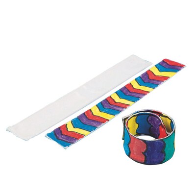 Fun and Safe! Slap bracelet is wrapped in protective tape and then encased in a fabric sleeve. We recommend decorating with permanent markers, fabric markers, or paint! Decorating supplies sold separately. Bracelet measures approximately 1" x 9" flat.