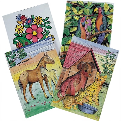 • Includes 6 each of 4 designs on quality watercolor paper, non-toxic watercolors, brushes and instructions