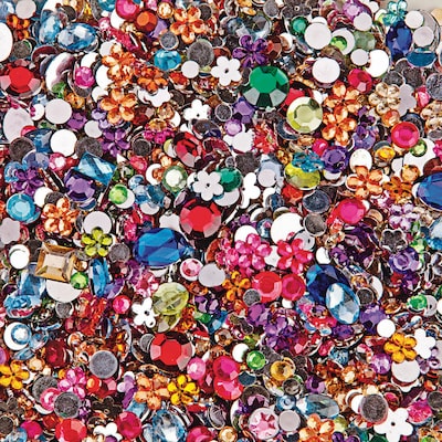Super hard, clear acrylic gemstones have a scratch-resistant, heavy foil backing. Glue them to masks and costumes, jewelry and more. Assorted bright colors, shapes and sizes, 5 to 12mm. Approximately 2,000 gems per pack.