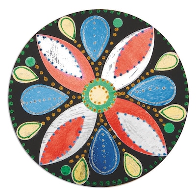 Simple to make and beautiful to look at! Design a beautiful foil leafed mosaic on black chipboard. Create your own pattern and then foil "leaf" the pieces with our foil color sheets. Then add glitter glue accents for a beautiful touch. All supplies included. Finished size is 9" diameter.