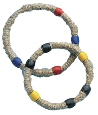 S&S Worldwide Jungle jute wrap bracelets craft kit includes wrapping jute, assorted colors of beads and non-toXic glue. Kit creates bangles and bracelets with the Dia of 3 1/2", sold as 36 per pack.