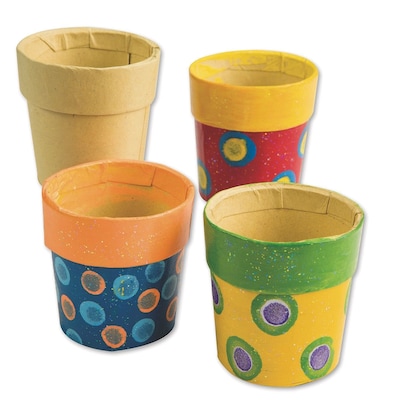 Decorate these charming little paper mache flowerpots with paint, decoupage, glitter, markers, anything your imagination allows! Use as containers for seedlings or other tiny treasures. 2"H x 2-1/4"W.