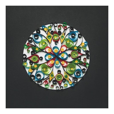 Create a beautiful paper quilled design with the ease of an adhesive surface and no glue! 4 each of 3 designs to quill (circle, flower or heart) along with 8" square black chipboard base, assorted color paper strips, reusable slot quilling tools, wood quill tools, detailed activity guide and instructions. Iridescent glitter is included to give your finished quilled design extra sparkle. Finished project is 8" x 8".