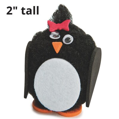 Dress up these dapper little flappers! No-glue craft is made with 2" black pom poms, self-adhesive foam feet, wings and bowtie, self-adhesive felt for belly and self-adhesive eyes. Approx. 2" tall when complete.