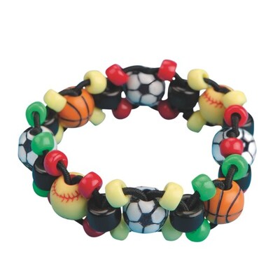 Choose just one or mix an assortment of basketball, softball and soccer beads. Combine with black pony beads mini color pony beads for a one-of-a-kind bracelet that represents 3 favorite sports for girls. Plenty of extra beads assure that everyone has plenty to choose from. Black elastic cord and simple weaving technique. Finished size is approx. 7" diameter (size will vary depending on size of child's wrist).