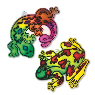 Realistic-looking frog and gecko plastic sun catchers are ready to decorate with stained glass paint (sold separately). Set includes 12 plastic frames, 6 each of 2 designs. Frog measures 4" x 3-1/2"; Gecko measures 5-1/8" x 3-1/8".