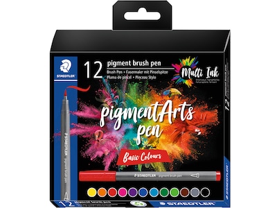 Staedtler Basic Colours Pigment Brush Pens, Assorted Inks, 12/Pack (371 C12-1 10 35)