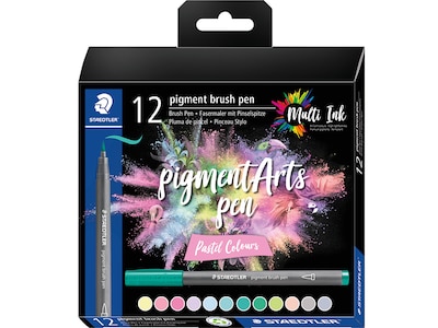 Staedtler Pastel Colours Pigment Brush Pens, Assorted Inks, 12/Pack (371 C12-2 10 35)
