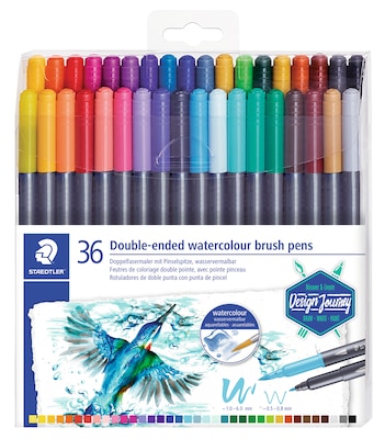 Staedtler Washable Double-Ended Watercolor Brush Pens, Twin Tip, Assorted Colors (3001 TB36)