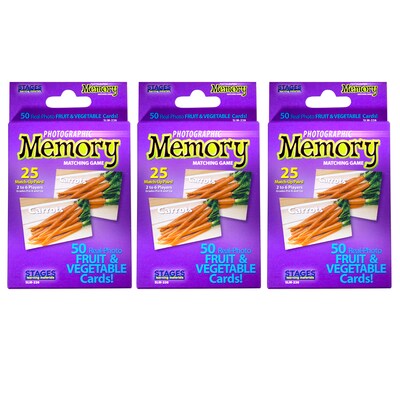 Stages Learning Materials Fruit & Vegetables Photographic Memory Matching Game, 3 Packs, Pre-K+ (SLM226BN)