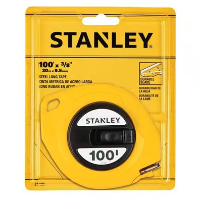 Get precise measurements with the Stanley 100 ft. tape measure. This steel long tape measure features durable construction and a quick, smooth take-up mechanism.