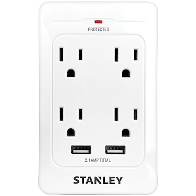 Tired of standard duplex wall outlets that just can't handle the number of things you need to plug in" Or wall outlets where you must use a USB converter in order to charge your electronics" The STANLEY 33202 SurgeQuad AC and USB Wall Tap converts a standard, 2-outlet, 3-prong grounded wall outlet into 4 outlets plus 2 USB charging ports! It is super convenient to use whether in living room, bedroom, kitchen, office, or while traveling to meet different needs all at the same time. It even has 1,080 Joules of surge protection!