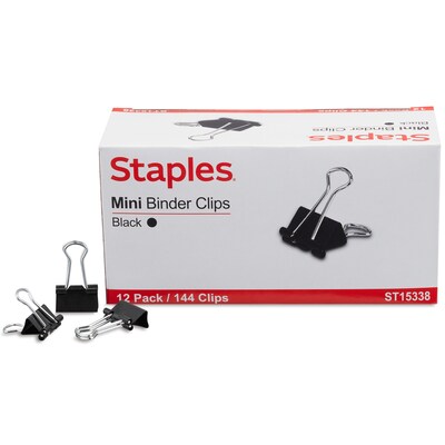 Staples® 0.6" Binder Clips, Mini, Black, 144/Pack (ST15338/15338)