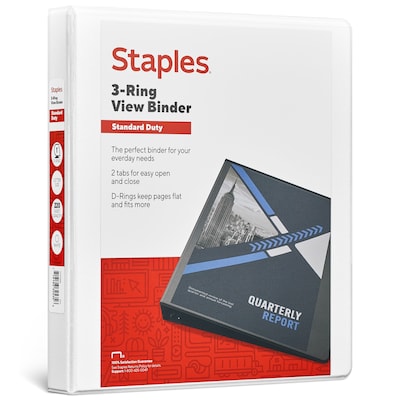 Staples 1" 3-Ring View Binder, D-Ring, White (55406/26432)