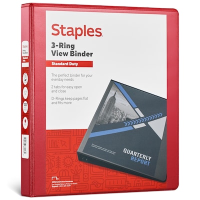 Staples 1" 3-Ring View Binders, D-Ring, Red (58652)