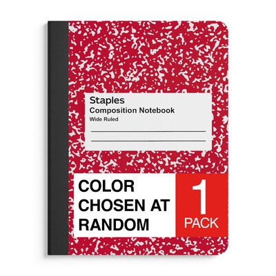 Staples 1-Subject Composition Notebook, 7.5" x 9.75", Wide Ruled, 100 Sheets, Color chosen at random (ST55077C)