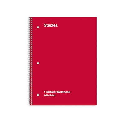 Record reminders and take notes during meetings, lectures and presentations with this wide-ruled 1-subject notebook. The standard notebook offers ample writing space and makes it easy to write legibly on the 70 wide-ruled sheets. Featuring perforated sheets, this Staples 8 x 10.5-inch assorted-color 1-subject notebook offers easy, tear-free page removal for simple sharing with co-workers.