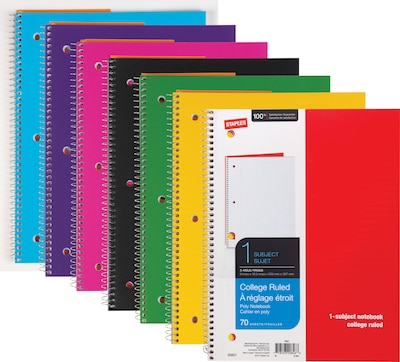 Staples® 1-Subject Notebooks, 8" x 10.5", College Ruled, 70 Sheets, Assorted, 48/Carton (27620CT)