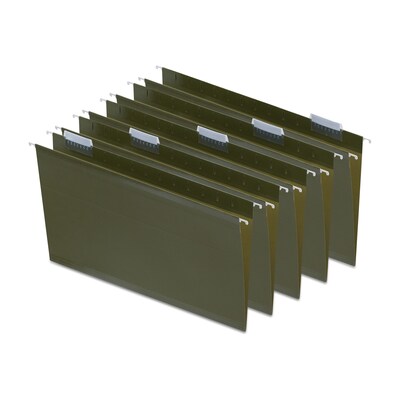 Staples 100% Recycled Hanging File Folder, 1/5-Cut Tab, Legal Size, Standard Green, 25/Box (ST16402/TR16402)