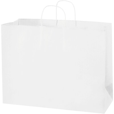 Heavy-duty White Paper Shopping Bags make packing purchases easy.