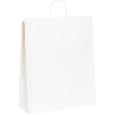 Heavy-duty White Paper Shopping Bags make packing purchases easy.