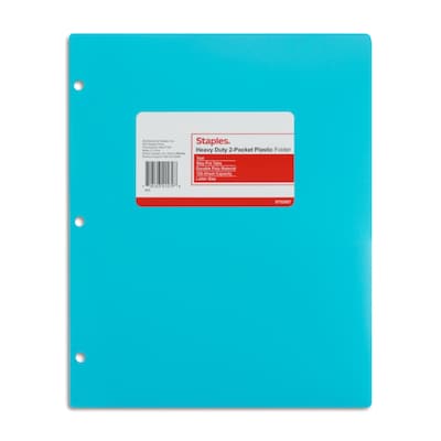 Staples 3-Hole Punched 2-Pocket Plastic Portfolio Folder, Teal (52807)