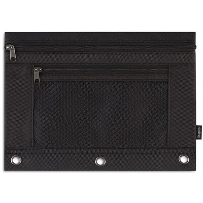 Staples 3-Ring Zipper Polyester Pouch, Black (24220)