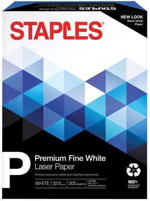 Staples white fine laser paper is the ideal choice for your most important documents, contracts and letters. A 32-pound weight with 25% cotton content makes this finely textured, high-quality paper a must for preserving your most critical information. Compatible with any laser printer or copier, every document is ready for the archives or even standard printing.
