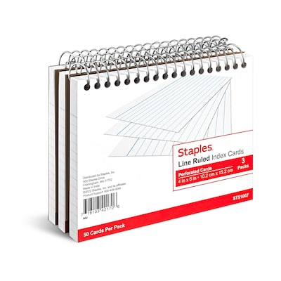 Staples™ 4" x 6" Index Cards, Lined, White, 50 Cards/Pack, 3 Pack/Carton (TR51007)