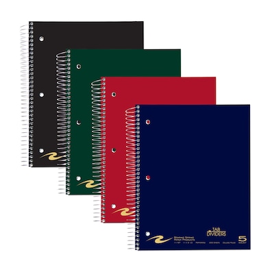 Staples 5-Subject Notebook, 8.5" x 11", College Ruled, 200 Sheets, Color chosen at random (11197)