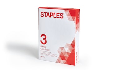 Staples 8.5" x 11" 3-Hole Punched Copy Paper, 20 lbs., 92 Brightness, 500/Ream (221192)
