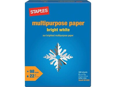 Staples 8.5" x 11" Multipurpose Paper, 22 lbs., 98 Brightness, 500/Ream (22098)