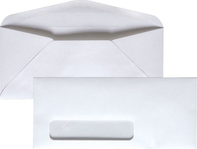 These classic # 9 envelopes are designed for standard business correspondence. The left window is exactly the right size and position to accommodate addresses as they appear on official business templates. Staples left-window envelopes are made of 24-po und paper for a sturdy construction that protects important business documents during delivery. The commercial flap is coated with adhesive gum for quick and easy sealing. This box of 500 envelopes comes with a 100 percent satisfaction guarantee.