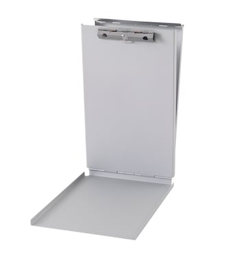 Fill out forms and store them inside this aluminum memo clipboard. A conveniently sized compartment holds blank forms or other important documents, while the sturdy metal clip keeps pages securely in place. The flip-up writing plate creates a convenient surface for taking notes or recording information. This memo clipboard boasts sturdy aluminum construction, making it ideal for a range of commercial uses.