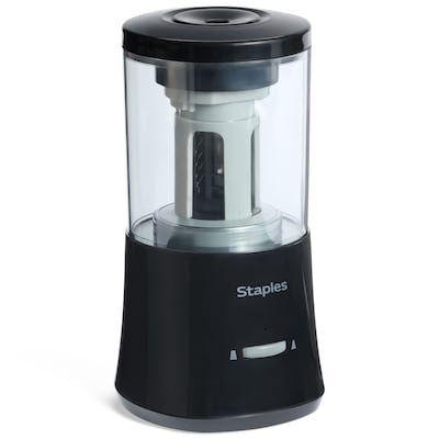 Prepare your smaller-sized office or classroom for all your handwriting needs with this Staples Pencil Sharpener. The vertical design means it does not take up a lot of space on the desktop or counter, and the no-slip bottom makes sure it stays put while in use. The auto-stop function, overheat prevention, and overflow protection make sure everything goes off safely. The motor operates at a quiet 80 dB, giving you distraction-free sharpening that allows you to focus on your work. The no-slip bottom keeps it all stable with the top sharpening hole placement. Backed by a 1-year warranty, this is an essential addition to any office or classroom.