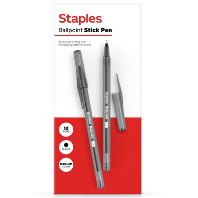 Staples Ballpoint Pen, Medium Point, 1.0mm, Black Ink, Dozen (ST52861)