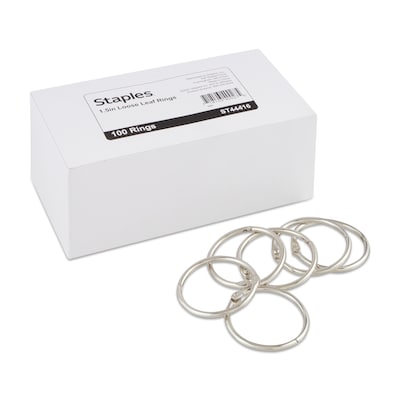Keep papers or small items organized on these 1.5-inch rings. Each ring in this 100-pack is easily pulled open and closes securely with a squeeze. Use these rings to connect pages to keep information accessible, and they are ideal for using with so much more than just paper. The silver color of these Staples loose-leaf rings adds a professional look to documentation and other items.