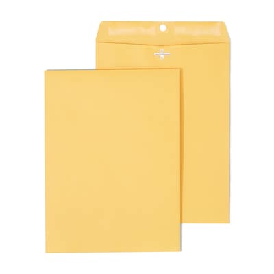 Protect important documents with Staples kraft clasp envelopes. These 9 x 12-inch envelopes fit letter-size documents, making them ideal for transporting applications, contracts and business statements. Each envelope in this 12-pack features a heavily gummed seal and clasp closure, letting you securely seal confidential documents or close with the reusable metal clasp. These Staples kraft clasp envelopes are made from 28-pound kraft paper and are durable for mailing or reusing around the office.