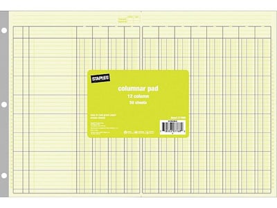 Make financial data and other records easy to read and write with this 12-column columnar book. The edge is three-hole punched, so you can conveniently store it in standard three-ring binders, while the 12 columns help you organize data. This Staples columnar book is tinted green to help reduce eyestrain while promoting readability, and it has 50 sheets to provide plenty of room.