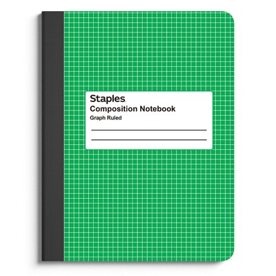 Write down key information while keeping it safe and secure in this composition notebook. Featuring a tough heavyweight cover, this composition book is center-sewn and permanently bonded, ensuring sheets don't loosen or fall out. The standard size of this Staples 7.5 x 9.75-inch green and white graph-ruled composition notebook is ideal for taking to meetings or lectures.