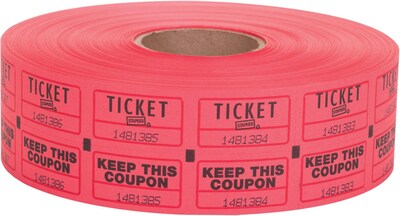 Host raffles and raise funds for your organization with this Staples red double ticket roll.