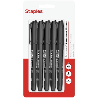 Staples Duramark Permanent Marker, Fine Tip, Black, 5/Pack (ST62954)