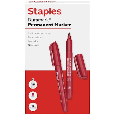 Staples Duramark Permanent Marker, Fine Tip, Red, Dozen (ST62951)