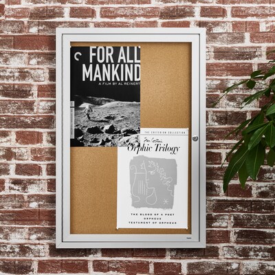 Protect your important messages and documents with this Staples cork enclosed display board. This 3' x 2' cork bulletin board keeps your materials safe from damage while ensuring long-lasting use. Its natural cork surface provides a reliable and durable option for pinning up notices, and its sleek and professional design complements any personal or professional environment. This Staples 3' x 2' cork bulletin board includes a wall mounting kit for quick and easy installation.