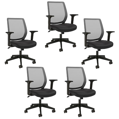 Staples Essentials Ergonomic Fabric Swivel Task Chair, Black, 5/Pack