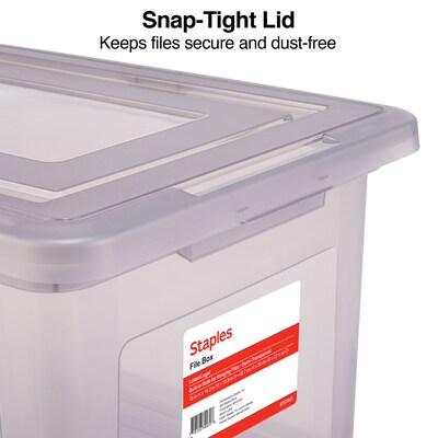 Staples File Box Plastic File Box Snap, Letter/Legal Size, Clear (140168/140139)