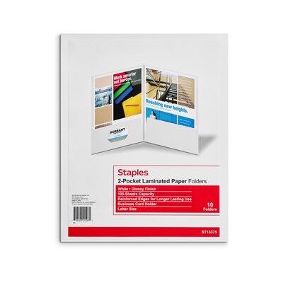 Staples Glossy 2-Pocket Paper Folder, White, 10/Pack (ST13375-CC)