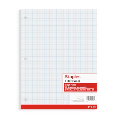 Staples® Graph Ruled Filler Paper, 8" x 10.5", 3-Hole Punched, White, 80 Sheets/Pack (ST40476B)