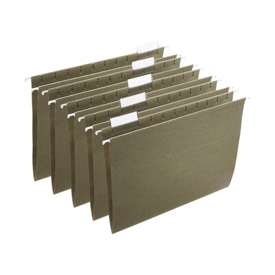 Staples® Hanging File Folders, 5-Tab, Letter Size, Standard Green, 250/Carton (ST116764CT)
